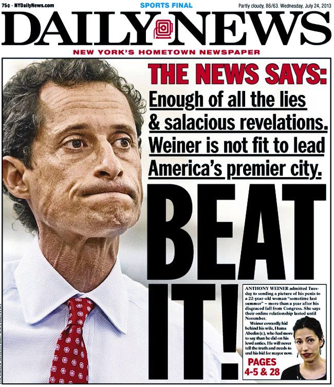 I feel bad for Weiner. He’s got a wife and a kid and some bigtime problems. But please, please, PLEASE stop running for mayor of New York. That’s a big job, Anthony, and you’re not up to it.