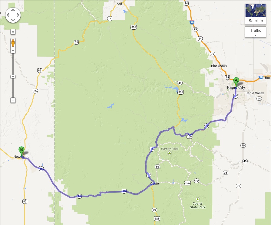 Our route should take about nine hours, according to Google Maps (which, of course, doesn’t exist yet), plus a couple of hours to walk the two-and-a-half miles or so around Devil’s Tower. But we expect it to take even less than that, because we’re college guys and we know that speed limits, like the “Don’t Walk” signs in New York, are mere guidelines, not laws. They are meant to be exceeded. Or flat-out disobeyed. We figure we’ll be traveling at 100 mph, or thereabouts.